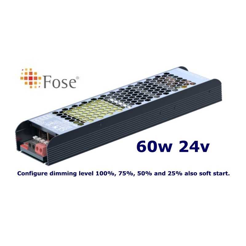 60w 24v Power supply, configurable for Soft start, 100%, 75%, 50% and 25% dimming