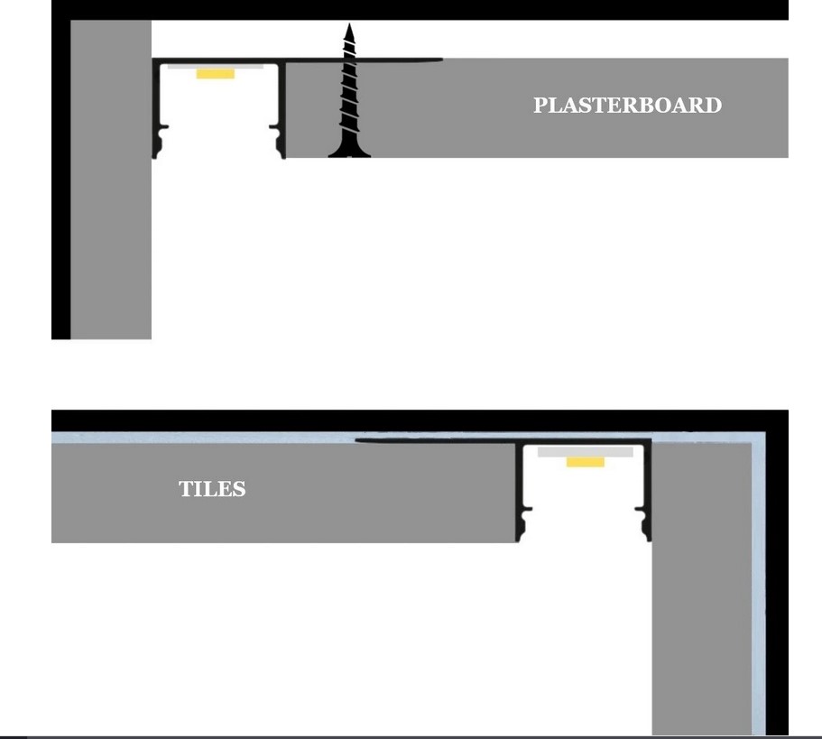installation under tiles or drywall. It provides elegant and discreet lighting while ensuring a clean and professional finish.